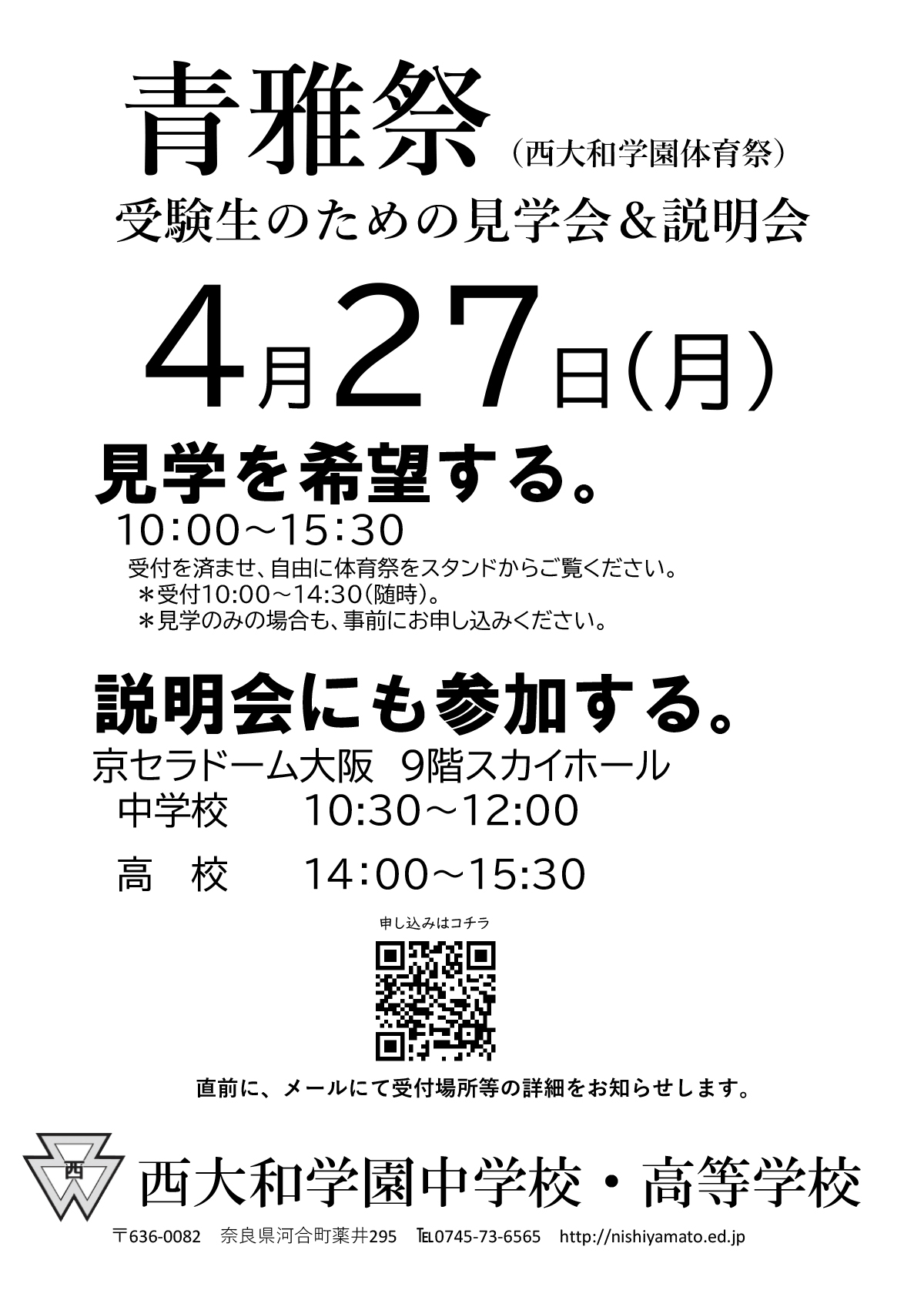 『青雅祭 受験生のための見学会&学校説明会申込み』の申込が始まりました。 下記「申し込み」ボタンからお申込みください。